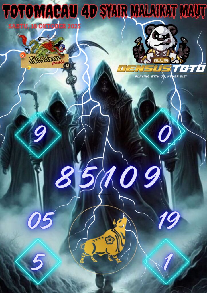 Prediksi DENSUSTOTO menyediakan Syair Togel Toto Macau resmi yang dapat anda saksikan dalam situs judi togel online ini. Setiap pemain judi togel online yang tidak memandang dan mengenal syair togel Toto Macau pastilah kurang mujur buat mendapati angka keluaran togel terjitu. Lantaran itu sekarang situs judi togel online DENSUS TOTO sekarang akan memberikan anda bocoran bagaimana caranya mendapati nomor keluaran prediksi Toto Macau dari syair togel sgp terjitu. Sekarang anda cuma perlu dan mengenal code syair Toto Macau ini merupakan prediksi Toto Macau yang dituang terdapat sifat code syair. Maka serius tidak bertanya-tanya jikalau sejumlah penggemar togel begitu menyintai prediksi syair togel ini. Buat prediksi syair Toto Macau dapat dipakai buat bahan ketidaksamaan mencari angka jitu yang bisa keluar pada hari ini. Karenanya berhati-hatilah selalu pada setiap terdapat dipicu di situ dapat anda angka bermain 2D, 3D dan 4D.